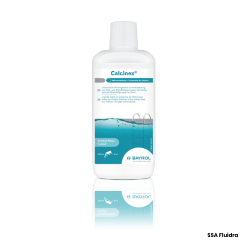 Calcinex® ist ein spezielles Flüssigmittel zur Verhinderung von unschönen und schwer entfernbaren Kalk- und Metallablagerungen an Beckenwänden und -boden, vor allem bei sehr hartem oder eisenhaltigem Wasser, z.B. Brunnenwasser. Durch die spezielle Rezeptur ist Calcinex® auch in chlor-, brom- oder sauerstoffgepflegten Pools stabil und erhält seine volle Wirksamkeit.
