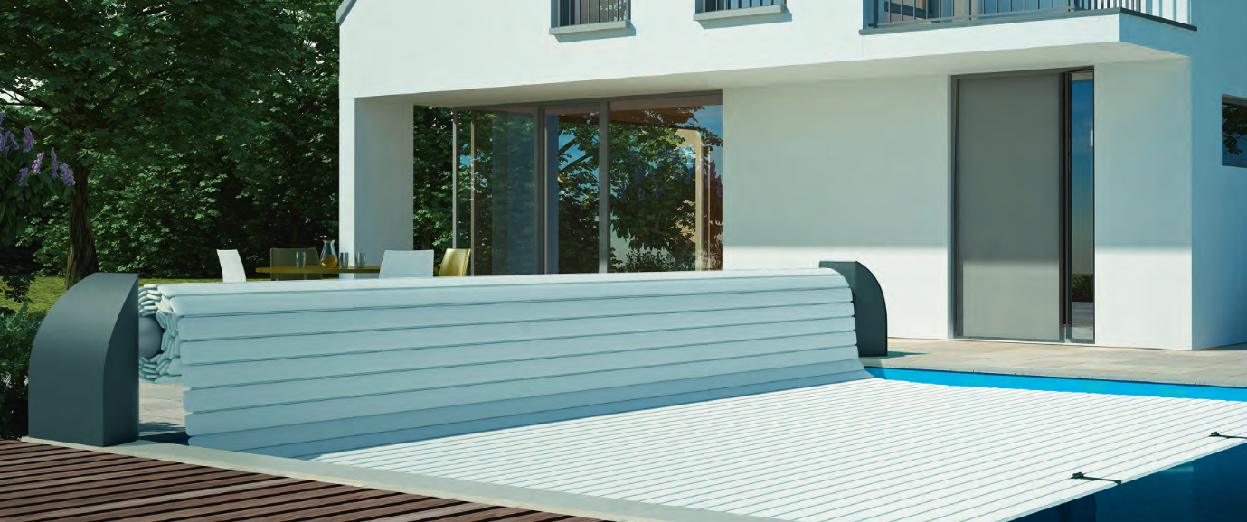 Die Contura ist eine elektrisch betriebene Rollabdeckung mit schlichtem Design, sodass sie sich perfekt in jede Poollandschaft einfügt. Sie reduziert die Verdunstung sowie die Verschmutzung, speichert die Wärme im Pool und lässt sich einfach in bestehende Poolanlagen integrieren.